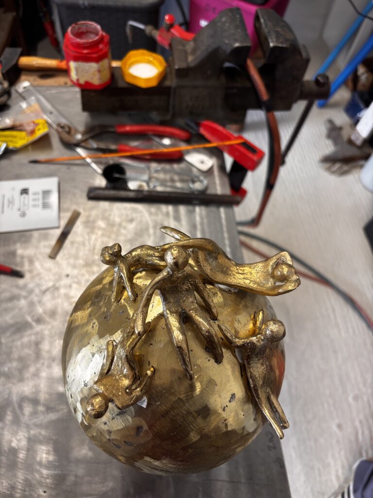 Plusieurs séances de soudure pour la finalisation de la sculpture « The link ». Une collaboration avec Paul Alegre, expert en soudures spéciales.